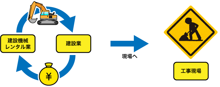 建設業者が建設機械を建設機械レンタル業者から借りているのです